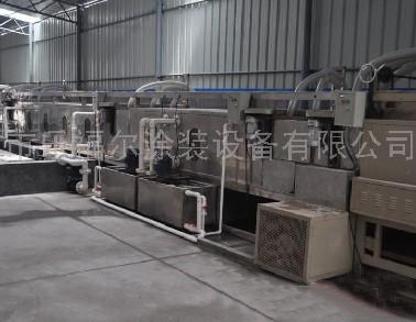 進口(把工件手工放入網帶上)→60℃NaOH脫脂高壓噴淋式去油→60℃熱水洗→洗去殘余的NaOH和油→水漂洗→補水洗→風幕→酸洗(HF)→熱水洗→水漂洗→補水洗→風幕(防止水帶入烘道,以便提高烘干效率和減少水痕)→烘干→冷卻→出口;